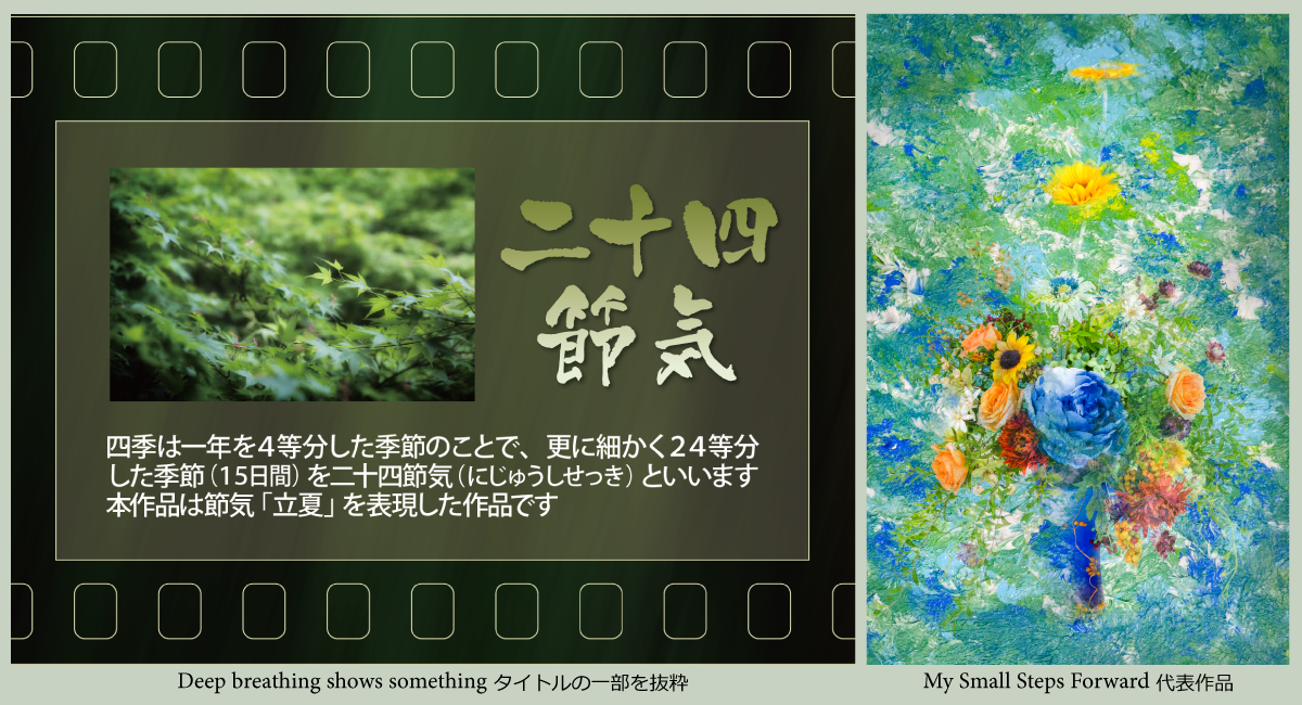 | 出展作品 タイトル | 1.Deep breathing shows something 2.My Small Steps Forward |